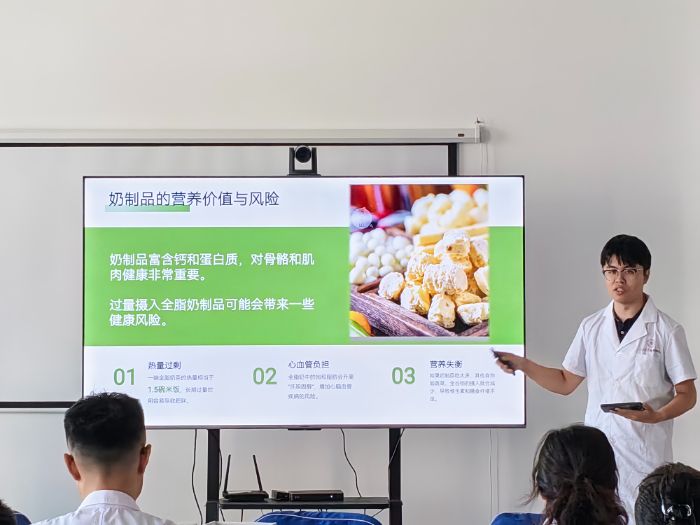 緊扣當地居民飲食習慣,宣講會圍繞“奶類制品科學攝入”“熏制肉食風險管控”“主食纖維攝入強化”三大主題展開。隊員們分發精心設計的多語言宣講手冊(含漢語、維吾爾語、哈薩克語),并在維吾爾族同學的輔助翻譯下,系統科普傳統飲食中的科學健康理念。