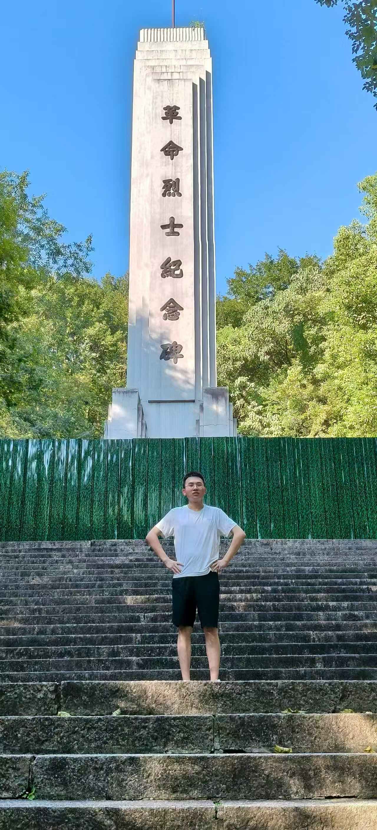 隨后,李博軒又來到革命烈士紀念碑前。高聳的紀念碑在藍天綠樹的映襯下,更顯莊嚴肅穆。站在紀念碑前的臺階上,李博軒深切感受到革命先烈們為了理想信念,不惜拋頭顱、灑熱血的大無畏精神。
