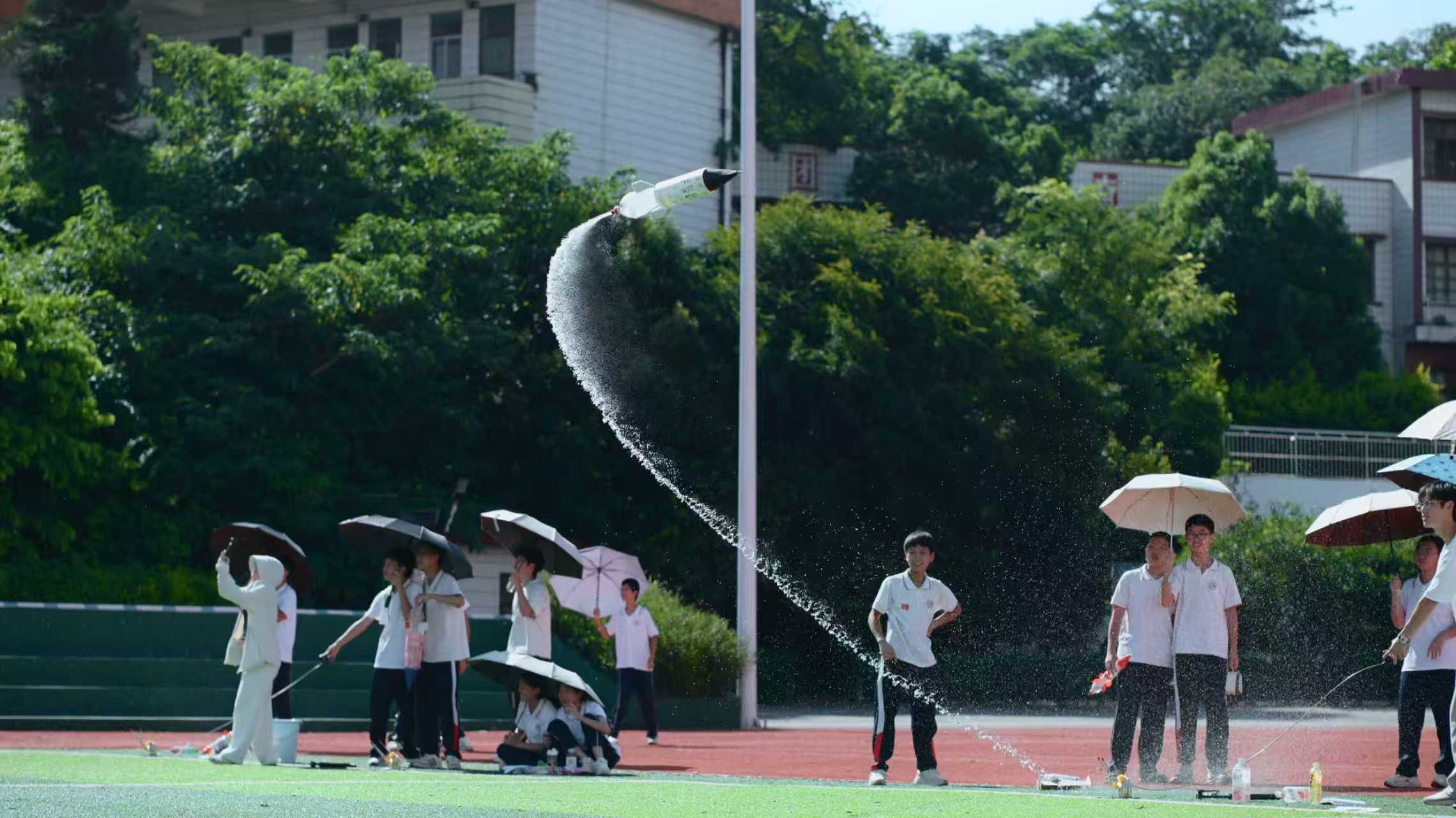 水火箭課程將物理知識融入趣味實踐。志愿者們帶領孩子們利用廢棄飲料瓶制作火箭箭體,講解推進原理與發射技巧。注水、加壓、倒計時——隨著指令下達,水火箭呼嘯升空,劃出一道清涼的弧線。孩子們在一次次發射中調整角度、優化結構,體驗失敗與成功的科學探索過程。“我明白了作用力與反作用力!”一名學生在發射成功后激動地分享。這場別開生面的物理課,讓抽象的科學定律變得可觸可感。