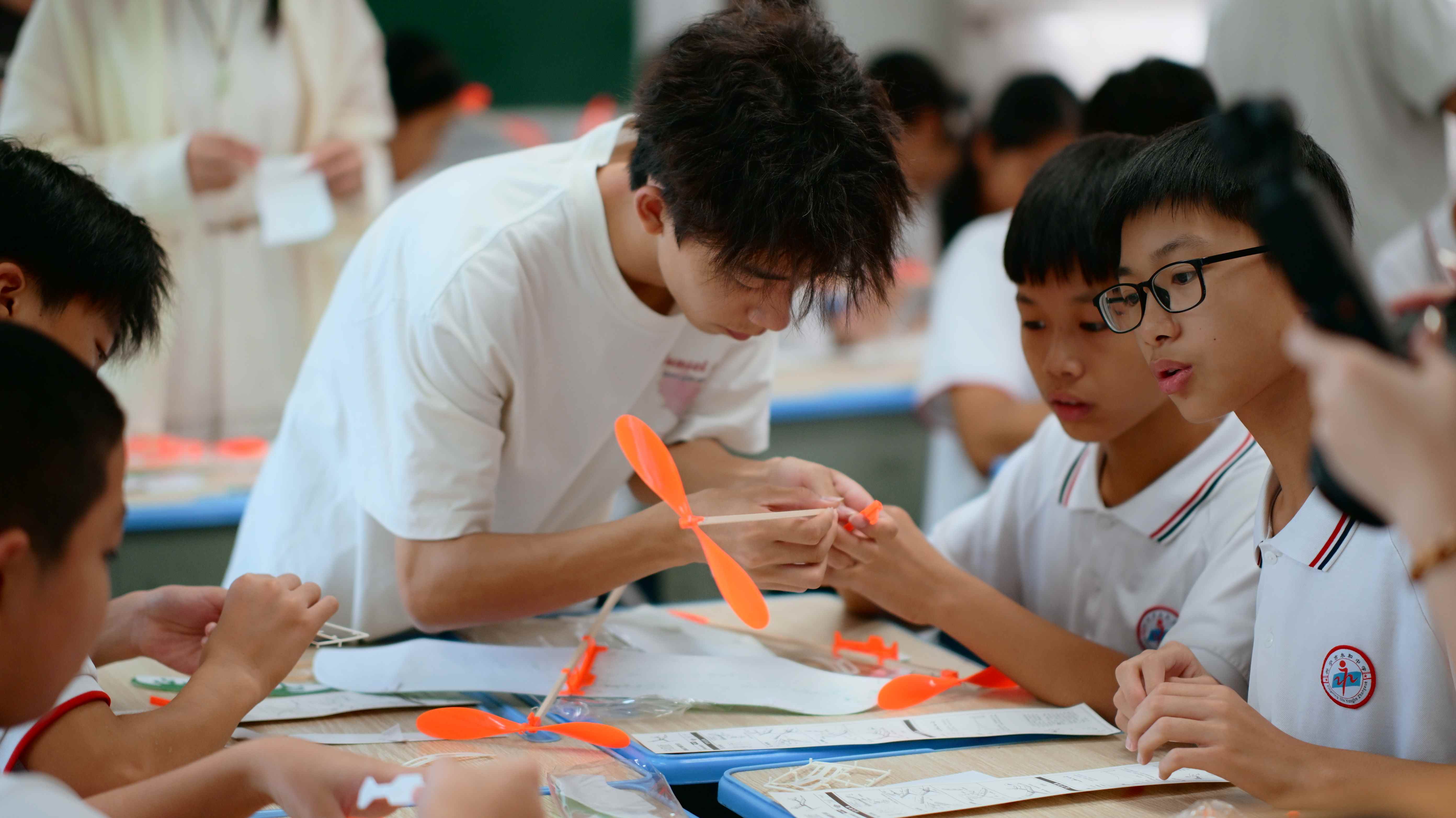 2025年7月28日到8月11日,廣東第二師范學院航夢科技教育實踐團走進興寧市永和中學,開展為期14天的暑期“三下鄉”社會實踐活動。本次活動以“航模科普·夢想啟航”為主題,通過橡皮筋動力飛機、水火箭制作與發射、航模科普與制作等系列課程,將科學知識融入互動體驗,讓鄉村青少年在動手實踐中感受科技魅力,助力青少年提升科學素養、激發科學夢想。