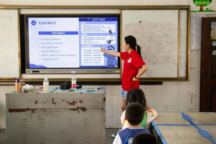 與此同時,實踐隊員李佳儀也以清晰標準的普通話,一字一句地為孩子們帶來了生動的防詐騙課堂。她借助推普課堂的契機,將防詐知識融入其中,讓孩子們在濃郁的普通話氛圍里輕松學習防騙技巧。這場特別的活動,不僅助力提升語言溝通能力,更有效增強了大家的防詐意識,為減少詐騙發生、為鄉村振興添磚加瓦。