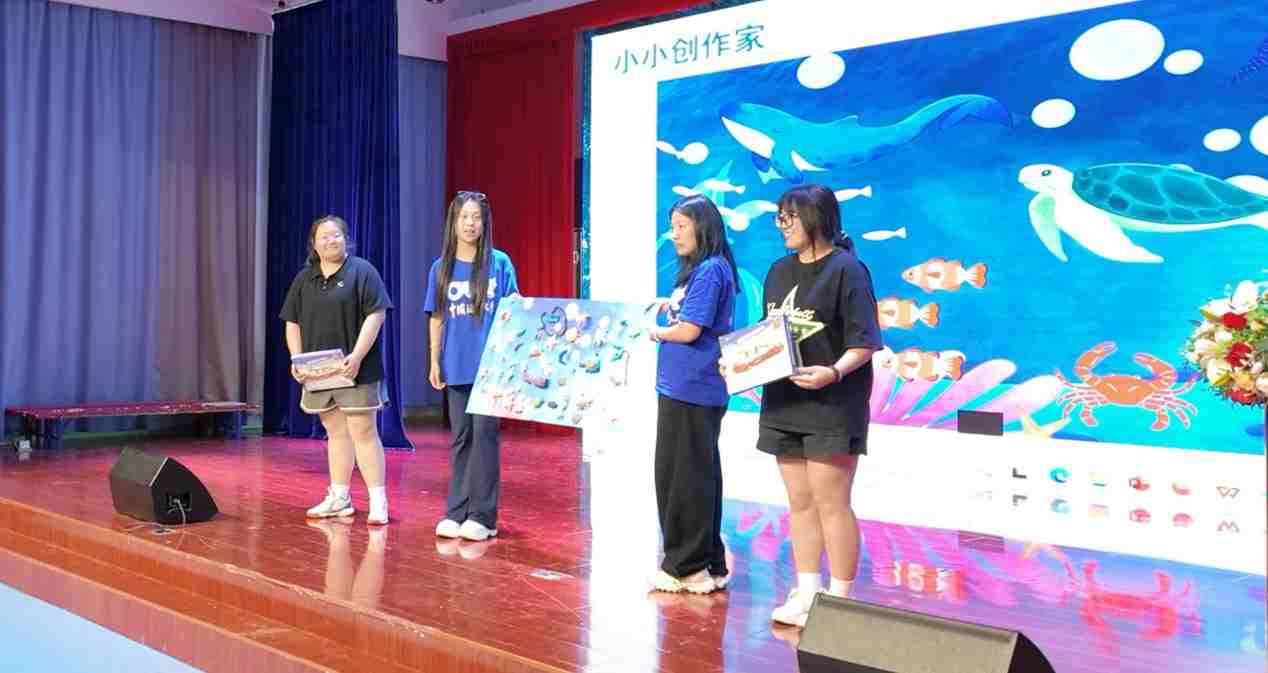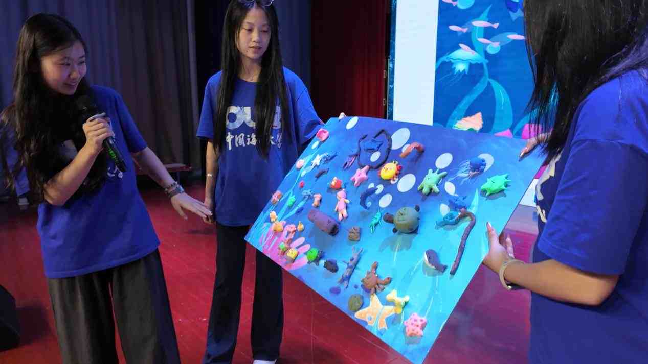 7 月 8 日,實踐隊轉戰 “紅色之城” 烏蘭浩特,走進內蒙古唯一的朝鮮族完全中學 —— 烏蘭浩特市第三中學。隊員們以藝術為媒傳遞海洋魅力,弦樂與管樂演奏奏響文化共鳴,海洋科普講解融入各民族涉海貢獻史。實踐隊員對中國海洋大學的生動介紹,以及海洋主題彩泥手工活動中誕生的一件件創意作品,烏蘭浩特市第三中學在海洋科普活動中,展現出對海洋的濃厚興趣與豐富思考。一位同學拿著海洋生物圖鑒興奮地說:“海洋里有那么多奇奇怪怪的生物,像會發光的水母、長得像星星的海星,太神奇了,大自然真是太厲害了!”另一位同學結合講座內容認真分享:“老師說海洋環境正在受到污染,我們平時要少用塑料袋,喝完的礦泉水瓶要記得回收,這樣才能讓海洋里的動物們有干凈的家。”還有同學暢想道:“我希望未來的大海里,鯨魚能自由地游,珊瑚礁長得滿滿的,我們人類和海洋里的所有生物都能好好相處,就像我們和身邊的小伙伴一樣。”實踐隊隊員李巒孌對此感悟到:“讓藍色夢想在這片紅色土地深深扎根,也讓不同民族的孩子在協作中加深了情誼。”