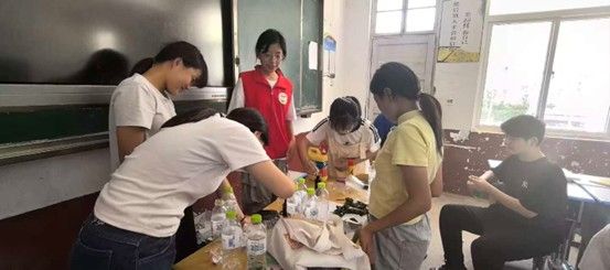 在思想引領課上,實踐團成員講述紅色故事、革命精神,聽到這些,孩子們滿臉都是崇敬,愛國的種子在他們心中悄然扎根;同時成員們選取“鄰里和諧互助”“誠信買賣”等法律案例作為活教材,引導孩子們塑造正確的人生價值觀,幫助他們“扣好人生第一粒扣子”。科普實驗課上,實踐隊隊員用塑料瓶、泥土等材料讓孩子們參與制作簡易物理凈化裝置,同時發揮化學專業特色,通過實驗呈現的有趣化學反應,如神奇的變色液、大象牙膏。當污水在凈化裝置下變成凈水、“神奇的變色液”從透明變成紅色、牙膏咕嘟咕嘟吐出泡沫時,孩子們臉上洋溢著興奮與驚奇,對學習的熱情愈發高漲;美育課融合自然觀察與動手實踐,開展植物拓印和藍曬工藝活動。孩子們在老師的引導下完成作品后,都迫不及待地向同伴們展示,眼里閃爍著創造的光芒。辯論賽圍繞“朋友犯錯要直言不諱”(正方)與“朋友犯錯要委婉勸說”(反方)展開,每方設置四名選手。賽場上,他們毫不怯場、清晰地說出自己的看法,在你來我往的交鋒中,孩子們的邏輯思維越來越清晰,語言表達也愈發流暢,展現出滿滿的自信與活力。多樣化的課程為鄉村暑期教育增添了豐富色彩。