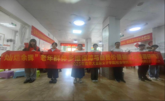 7月9日上午,陽光明媚,微風和煦。南京師范大學“燦爛余暉”實踐團隊小分隊7位同學走進江寧雨花敬老家園,開展“燦爛余暉”暑期實踐活動。活動通過線下宣講、游戲互動、問卷調查等形式,為老人送去知識、活力與歡樂,也讓學生深刻體會到“老吾老以及人之老”的內涵,明白青年人肩負起的社會責任。