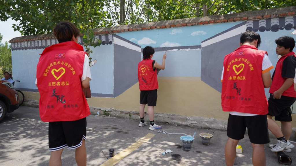 這支墻繪團隊是宿州學院2025年暑期社會實踐校級團隊,由學院分團委書記王靜擔任指導老師,22級美術學國畫專業路敏擔任隊長,成員涵蓋視覺傳達設計、環境設計、服裝與服飾設計等多個專業。此次墻繪活動,是他們“聚焦基層志愿服務”實踐項目的重要環節。既傳遞了“禮讓和諧”的精神內核,又展現了社區獨特的生活氛圍。