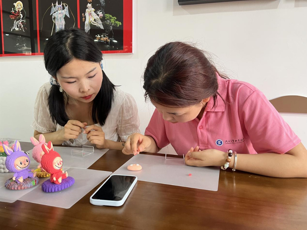 張佳玥同學學習手作技藝-面塑。(郭雯妍供圖)