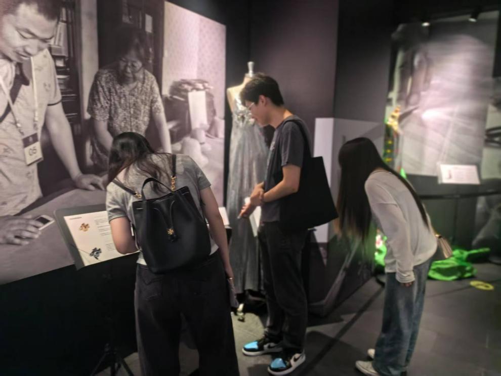 在宮廷服飾展區,一件服飾吸引了眾人目光。龍紋、星辰、山形等象征王權的紋樣,全由捻金線盤繡而成,近看可見每根金線,歷經百年仍保持著的光澤,讓人大為震撼。“這不僅是件衣服,更是無數匠人心血的結晶。”實踐團成員李王朕在筆記本上認真記錄道。