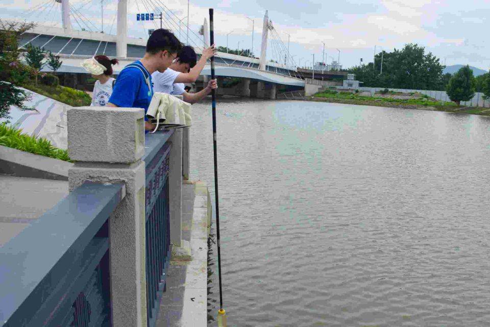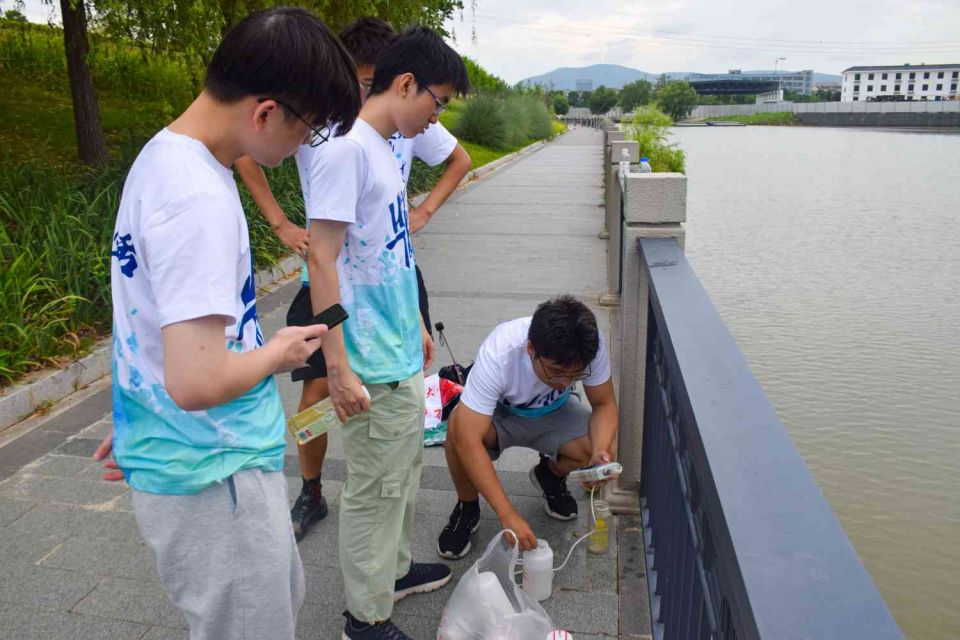 負責采集水樣的隊員在研究生的指導下使用儀器現場測量部分數據及保存水樣,分別于秦淮河6個采樣點采集各2組樣品,共計12組水樣。樣品用于測量水樣的pH、銨態氮、亞硝態氮、硝態氮、磷酸鹽、總有機碳(TOC)等指標,并基于以上數據分析水體污染凈化。