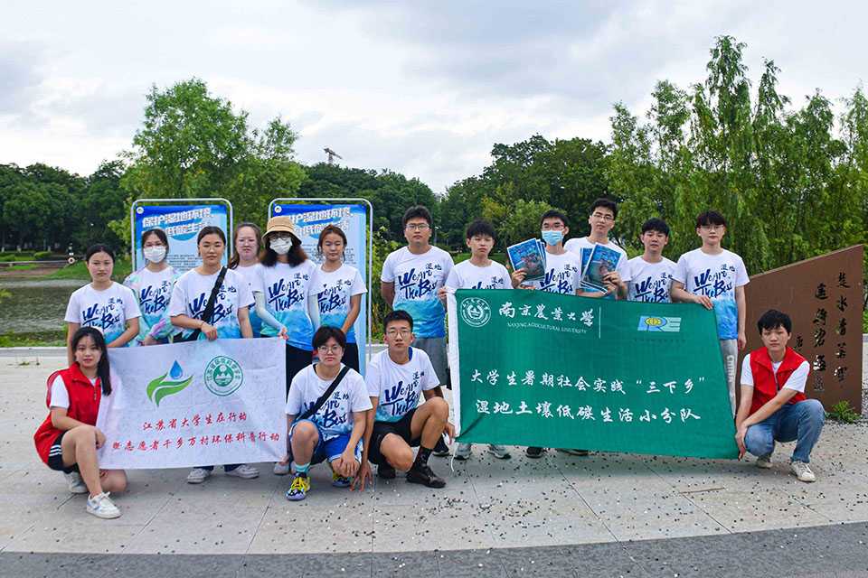 6月30日,濕地土壤低碳生活小分隊前往南京七橋甕生態濕地公園,圍繞“探索濕地土壤,致力低碳生活”這一主題開展暑期社會實踐活動。南京七橋甕生態濕地公園位于南京市秦淮區,由秦淮河與運糧河圍合而成,以保持原有地貌、溝通水網、保護濕地、生態造林為主要手段,體現了節能環保的現代理念。通過實地探索,實驗研究、科普宣講的形式,探索濕地土壤的影響作用,了解水體污染凈化、濕地對碳氮磷的固定情況,并呼吁綠色低碳,保護環境的生活方式。