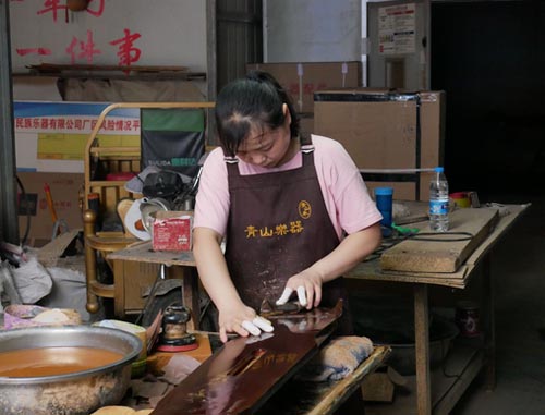(圖3-工廠員工打磨古琴)