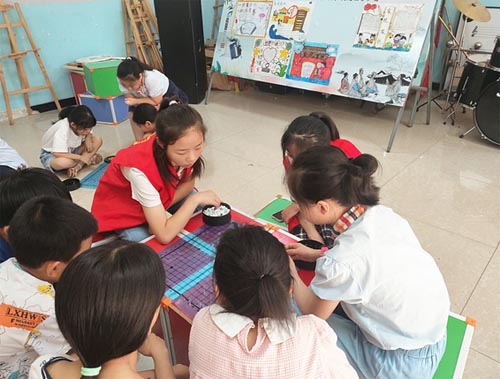 (通訊員何奕童)八月的驕陽華麗而耀眼,孩子們的暑假也接近尾聲。為深入貫徹落實習近平新時代中國特色社會主義思想,積極響應中央文明辦、團中央等部門的號召,更好的服務留守兒童,豐富孩子們的暑假生活。2022年8月1日到8月15日,湖北文理學院的蒲公英志愿隊的志愿者們聯合厲山鎮中心小學在鐘光貞校外輔導站共同舉辦了“七彩假期你我同行”暑期夏令營活動,組織留守兒童們開展了主題心理班會、興趣輔導課程、手工課、科學實驗課等課程。