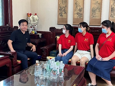 2022年8月17日晚,調研團成員通過騰訊會議召開線上例會,在進一步交流與商討后,確定了具體的調研流程與訪談提綱,以確保線下調研有效開展。2022年8月17日早九點,陳一凡等同學首先到宿遷市洋河國御酒業股份有限公司、江蘇夢蘇名酒業有限公司和宿遷市洋河鎮洋之雀酒業有限公司進行參觀,了解各公司的生產情況和地下水利用情況,并對洋河國御酒業股份有限公司的經理朱士建先生進行了專題訪談,深入探訪中小型酒企對于水權交易的看法。在整個訪談過程中,朱先生親切幽默,整體的交流氛圍輕松融洽。
