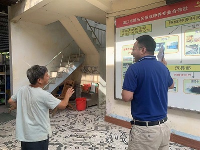 團隊首站來到位于湛江市坡頭區麻斜井頭村的恒成種養專業合作社,該合作社于2008年成立,以湛江市恒威種養科技有限公司為牽頭主體,合作社的主要經營范圍為水稻種植、商品雞養殖等,主要產品是稻香米、軟紅米、塔山金花雞、湛江走地雞等農副產品。2020年,恒成種養專業合作社被評為國家農民合作社示范社。