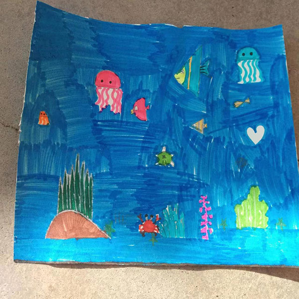 西王小學學生美術課作品 文案組推出每日實踐日志,開辟專欄進行知識科普、人文宣傳等,用文字記錄下學生們的點點進步和實踐隊員的日常工作。后期組用心制作主題vlog聯動海報、主題繪本……聯動實踐團推進電商秦安項目,打造別具特色的電商推廣模式。