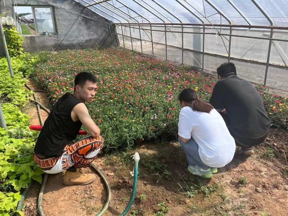 在當(dāng)?shù)厝藛T的帶領(lǐng)參觀后,調(diào)研小組的同學(xué)們來到花棚,進(jìn)一步了解近年來花卉的長勢、銷量等情況。經(jīng)過與當(dāng)?shù)剞r(nóng)戶的交流,同學(xué)們了解到了菊花的習(xí)性、種植方法、功效作用、主要病害的防治方法等。同學(xué)們利用專業(yè)知識,為農(nóng)戶們普及互聯(lián)網(wǎng)直播的方法,把理論和實(shí)踐結(jié)合起來,在實(shí)踐中成長,在服務(wù)中成長,體現(xiàn)了大學(xué)生自身的價(jià)值。