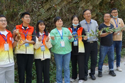 隨后,團隊跟隨十堰市農(nóng)業(yè)科學院農(nóng)藝師張澤志、孫良學進入山中尋找野生中藥材,并進行對野生中藥材的識辨學習,同學們還發(fā)現(xiàn)了品質(zhì)優(yōu)良的野生虎杖,當即采集并決定帶回研究。