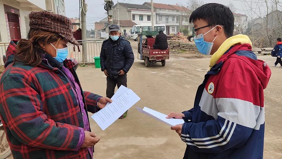 圖為湖北省實(shí)踐隊(duì)員在對(duì)村民進(jìn)行采訪調(diào)研。通訊員 梅捷 供圖