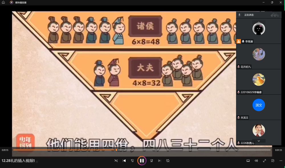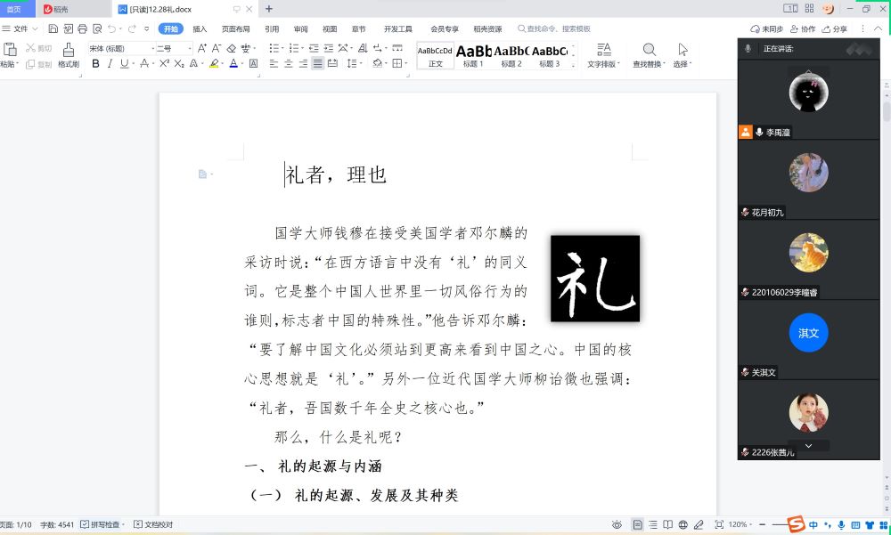 2023年1月4日下午,“杏壇春雨入鄉(xiāng)土,犁牛勤耕承鄉(xiāng)髓”調(diào)研實(shí)踐小組隊(duì)員李禹潼通過(guò)線上開(kāi)啟騰訊會(huì)議的方式進(jìn)行宣講。從禮的起源與內(nèi)涵、《論語(yǔ)》中的“禮”思想、禮的現(xiàn)代意義三大方面對(duì)禮進(jìn)行了全方位的講解。通過(guò)講解孔子對(duì)“禮”非常重視,對(duì)禮的闡釋非常多,大都被記錄在《論語(yǔ)》《孔子家語(yǔ)》《禮記》 等典籍中。僅就《論語(yǔ)》而言,“禮”字出現(xiàn)的次數(shù)就有70多次。如果再加上那些雖未直接出現(xiàn)“禮”字但確屬言說(shuō)“禮”的章句,則“禮”在《論語(yǔ)》中的出現(xiàn)的頻率并不在“仁”之下。來(lái)說(shuō)明,“禮”和“仁”一樣,是孔子最為重視的道德。隨后“杏壇春雨入鄉(xiāng)土,犁牛勤耕承鄉(xiāng)髓”調(diào)研實(shí)踐小組隊(duì)員李禹潼通過(guò)講解“八偷舞于庭,是可忍也,孰不可忍也。”和“克己復(fù)禮為仁。”兩則論語(yǔ)并播放相關(guān)視頻來(lái)說(shuō)明禮是社會(huì)秩序和規(guī)范,禮彰顯仁德的重要思想,讓大眾對(duì)儒家文學(xué)禮的思想有了更深刻的理解。
