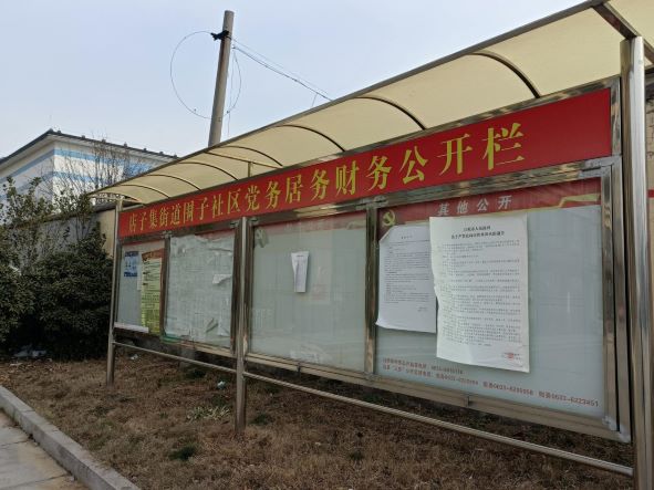 圖為張家圍子社區財務公開欄。多彩大學生網通訊員萬妍 攝