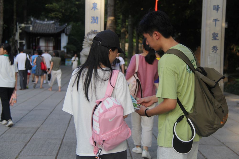 實踐隊隊員們首先通過對風景區垃圾分類狀況、垃圾桶區域數量的調研,初步了解了鼓山風景區垃圾分類現狀,為后期的宣傳行動進行知識儲備。同時,實踐隊員沿途撿拾鼓山垃圾,以身作則,向周圍游客宣傳環保意識。
