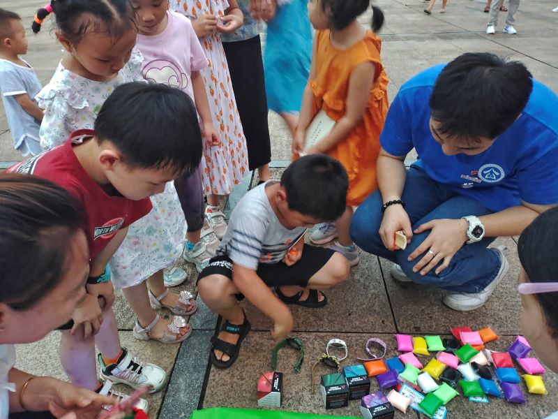 懷化學院法學與公共管理學院學生為小朋友發放小獎品(朱桑妮 攝)