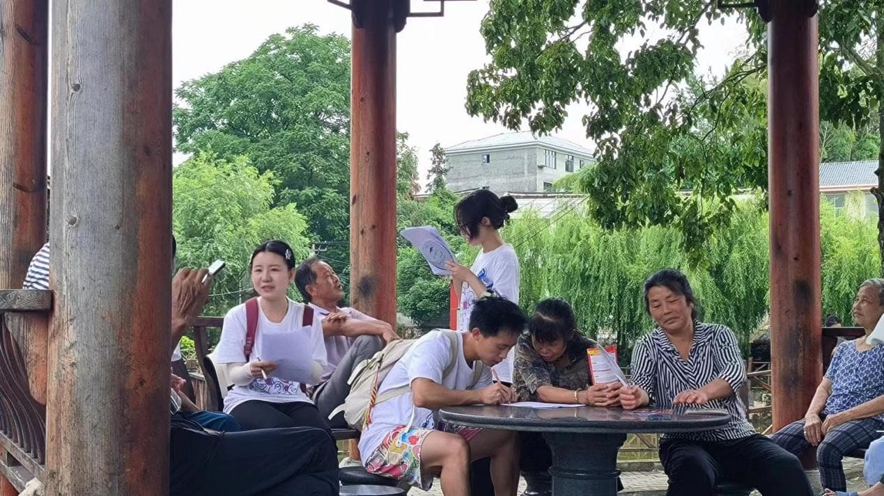 志愿者與鄉(xiāng)親親切交談(姚怡媛 攝)