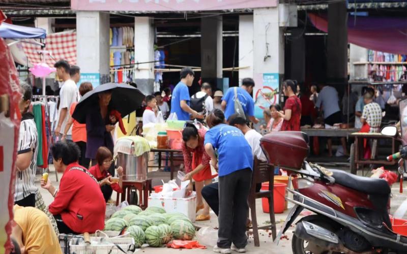 都說這“人間煙火氣,最撫凡人心。”于是,懷化學院法學與公共管理學院暑期社會實踐調(diào)研團便來到這巖垅鄉(xiāng)體驗這世間百態(tài),人間煙火。雖說需要經(jīng)過曲折的山路,但是當團隊到達巖垅鄉(xiāng)的時候,集市的氣息撲面而來,賣香料的、賣西瓜的、磨香油的等等,小小的鄉(xiāng)鎮(zhèn)卻是應有盡有。