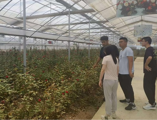 圖為能力樹和美鄉(xiāng)村調(diào)研社會實(shí)踐團(tuán)參觀玫瑰大棚。張夢園 供圖