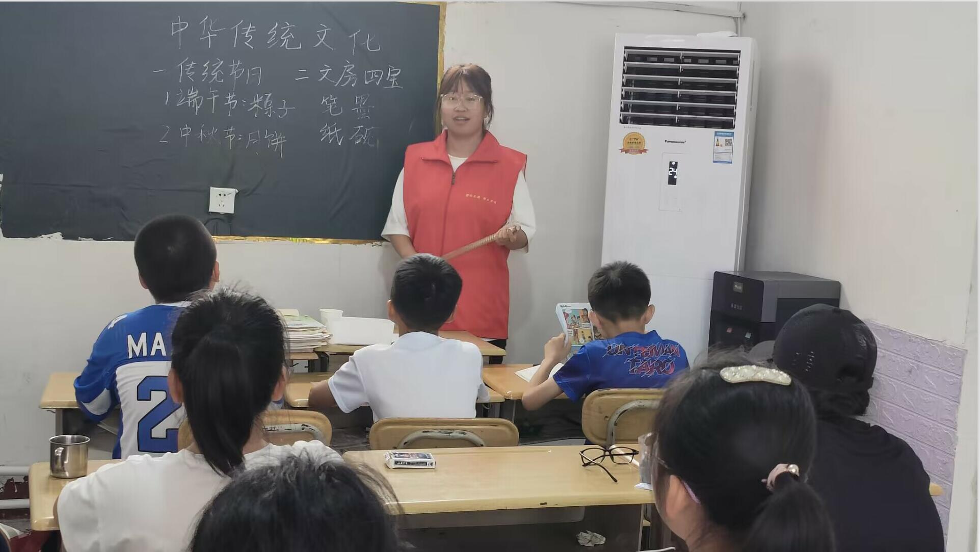 圖為基層連線,共鐫曙光隊隊員為中小學生講解傳統(tǒng)節(jié)日和文房四寶。通訊員 李雅馨 供圖