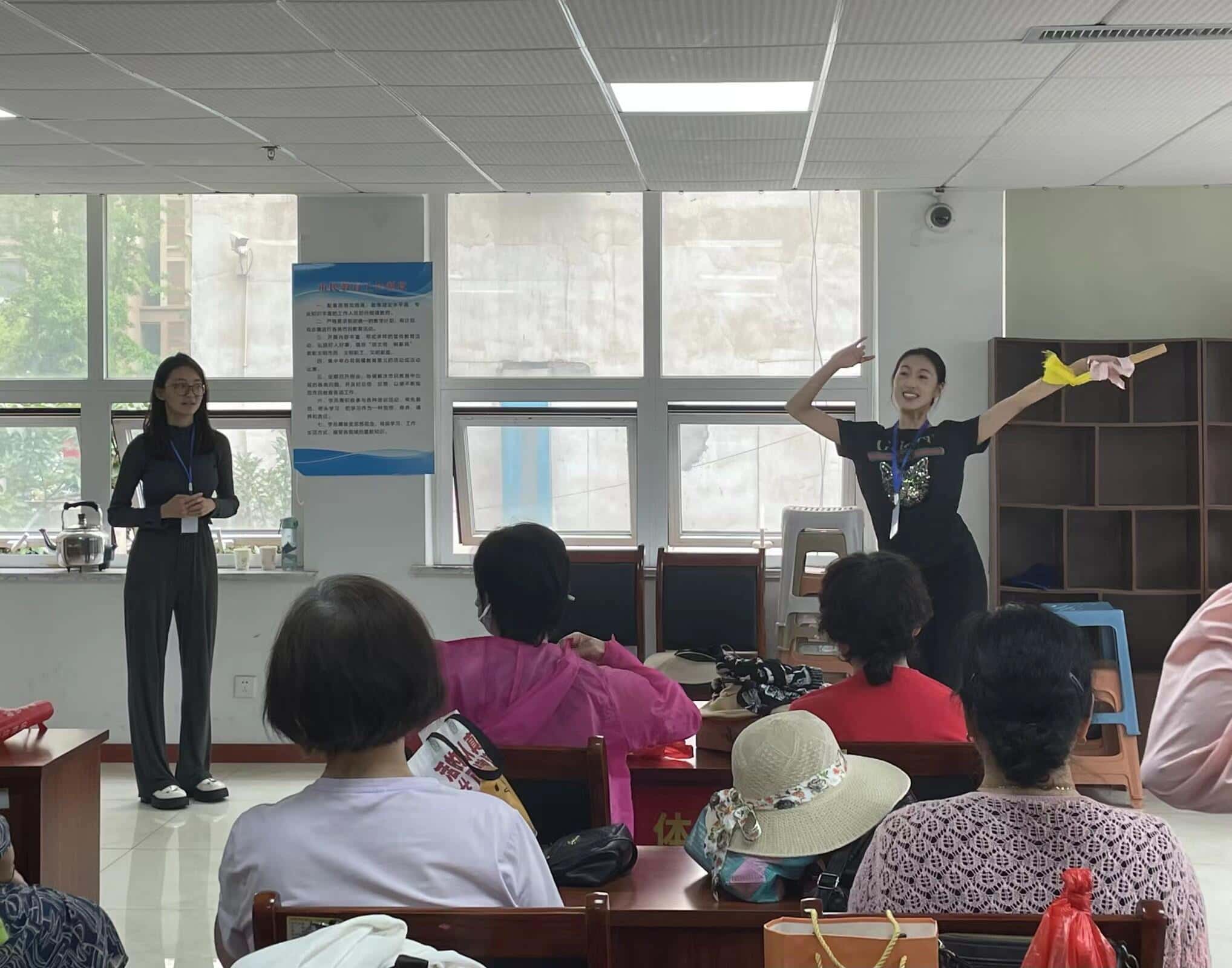 27日下午,樂隊以及合唱團全員到場,進行大彩排。實踐隊再次對演唱中途的細節進行調整指導,調整站姿以及演唱時的表情狀態,做到自然且優美。同時,對指揮的阿姨進行一些表情以及動作上的指導,使指揮有足夠飽滿的情緒調動整個演唱氛圍,從而達到比較滿意的演唱效果。排練期間,實踐隊對阿姨們進行了采訪,阿姨們就合唱團成立前后自己的感受、社區的變化以及對社會做出的貢獻發表了自己的看法、觀點。同時,也對阿姨們進行了關于詐騙問題的了解,她們毫不吝嗇地夸贊合唱團成立對該社區老年人日常生活豐富、煥然一新的積極作用,也向我們分享了一些自己身邊的詐騙案例,敲響警鐘,引以為戒。