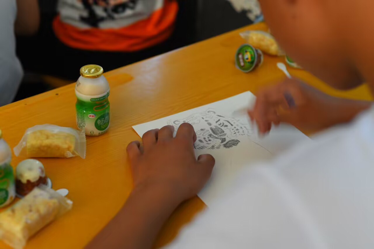 圖為望程學校同學們自我畫像的繪制過程。通訊員 朱廣林 攝
