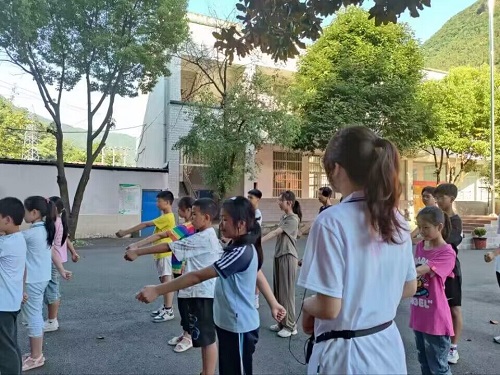 圖為老師糾正學(xué)生同手同腳姿勢(shì)