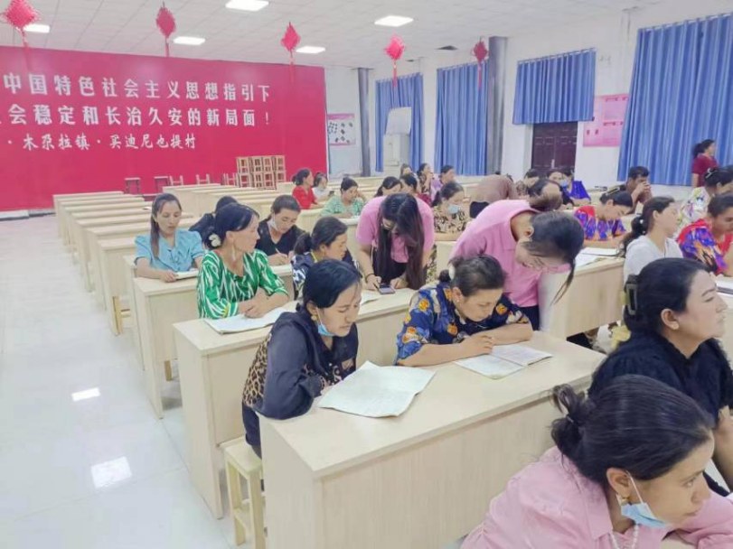 - 塔里木大學(xué)學(xué)子在和田地區(qū)于田縣買迪尼也提村給農(nóng)牧民開展國語夜校的工作,帶領(lǐng)農(nóng)牧民學(xué)習(xí)普通話,推進(jìn)普通話進(jìn)鄉(xiāng)村,提高農(nóng)牧民普通話