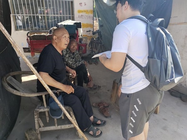 圖為團隊成員劉金陽向當地老人了解公共設施建設問題。通訊員 柴岷坤 攝