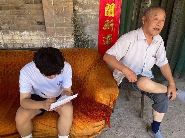 圖為團隊成員柴岷坤與當地老年活動中心老人進行溝通并記錄。通訊員 孫振威 攝