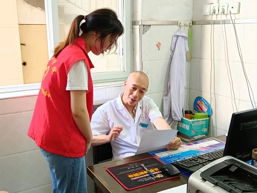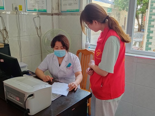 圖為實踐隊隊員采訪衛生院醫生。 楚漢青年志愿服務隊隊員 徐昕怡 供圖
