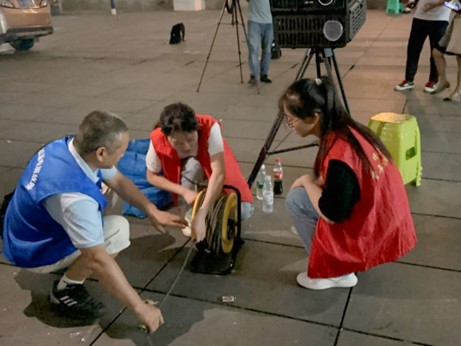 電影放映結(jié)束后,人群逐漸散去,實踐團成員們則幫助現(xiàn)場的工作人員整理放映設(shè)備,并對當(dāng)晚的放映員進行了人物專訪。放映員前輩表示,自己在該崗位工作已有8余年,當(dāng)下電影放映使用的放映設(shè)備是2016年更換的,雖然與其他地區(qū)的設(shè)備相比已經(jīng)較為先進,但依然存在影片亮度不高、效果不夠清晰等問題,這也是傳統(tǒng)露天放映所難以避免的,希望今后可以得到改進。至此,本次貴州省貴陽市農(nóng)村公益電影放映實踐活動也圓滿落幕。