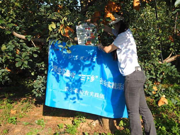 (注:袋小果助農實踐團隊成員宣傳水果套袋產品)