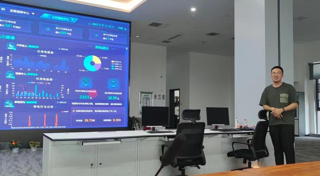 科技的應用,生活的慧眼在供電所二樓,工作人員向隊員們展示了供電所的各種發電措施,以及重要的監控、管理平臺——蘭考能源互聯網運營平臺。通過先進的互聯網技術,多元化的能源數據直觀地呈現在隊員們的眼前。工作人員介紹,此平臺可以實時監控蘭考縣內的能源變化情況,如住戶用電、碳排放量、天然氣和石油等資源的使用量等,涵蓋了政府、居民、電網、能源消費企業等多個方面。蘭考縣的能源管理基本實現了智能化,對于提升調度效率、降低管理成本有重要的意義。隊員董佳威評價:“實現互聯網的應用對各行各業都有積極影響,新能源產業也不例外。”