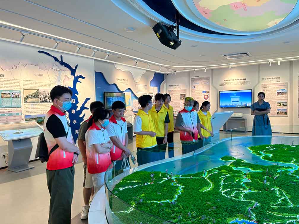 圖為實踐團成員在工作人員帶領下學習湛江市生態政策的變化