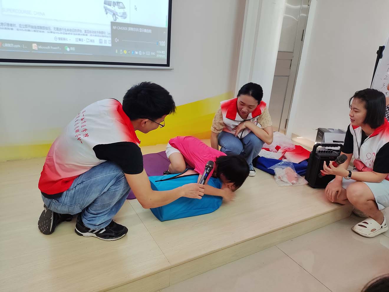 圖為小朋友在志愿者引導(dǎo)下對家人進(jìn)行心肺復(fù)蘇