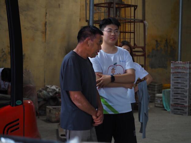 首先,袋小果助農(nóng)實(shí)踐團(tuán)在負(fù)責(zé)人的帶領(lǐng)下來(lái)到了蛇窩泊鎮(zhèn)當(dāng)?shù)氐恼S冷藏,與正豐冷藏的老板進(jìn)行了交流,正豐冷藏作為蛇窩泊鎮(zhèn)重要的冷藏儲(chǔ)存和物流服務(wù)提供商,在水果的銷售中扮演著關(guān)鍵的角色,確保新鮮水果的保鮮和供應(yīng)。