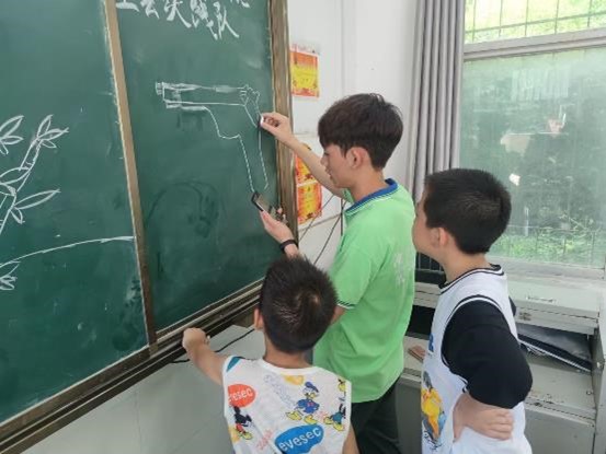 圖為隊員松松老師在黑板上進行繪畫教學的場景。湖北醫藥學院 陳欣榮 供圖