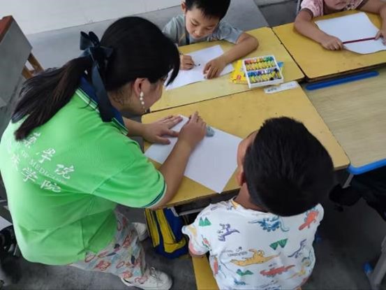 冀以塵霧之微補益山海,螢燭末光增輝日月。2023年是貫徹黨的二十大精神的開局之年,為深入貫徹黨的二十大精神,大力弘揚奉獻、友愛、互助、進步的志愿服務理念,2023年7月8日,湖北醫藥學院星火筑夢社會實踐隊的17名隊員共同前往十堰市丹江口市六里坪鎮蒿口村蒿口小學開展為期14天以“星火筑夢,點亮微光”為主題的愛心支教活動。課程內容豐富多彩,志愿者們為孩子們設計開展了捏粘土,折紙手工、趣味繪畫等藝術興趣類課程,旨在激發孩子們的興趣,培養孩子們的動手能力,提高創造力。