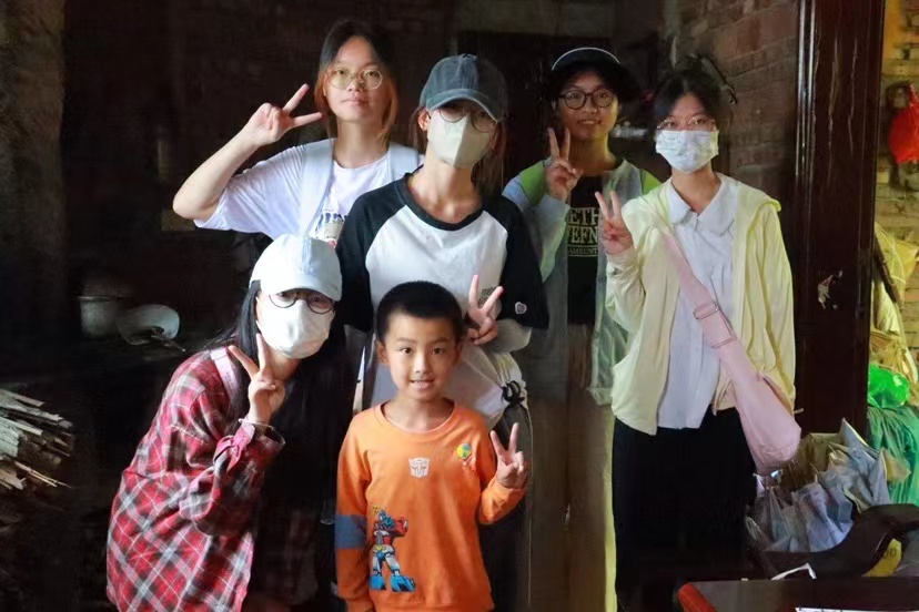 圖為實(shí)踐隊(duì)員和困難家庭無法上學(xué)的孩子的合影