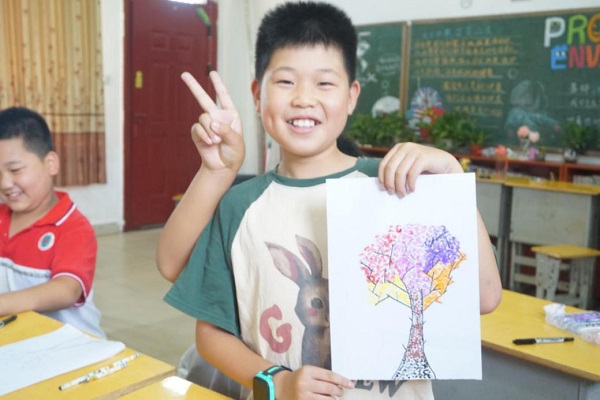 美在身邊,形無定法,貴在感知,重在創造。為培養學生發現美、表現美的能力,7月10日上午,湖南師范大學外國語學院赴漣源市湖南師范大學附屬三一學校實踐團開展“點的魅力”創意美術課。此次課程由實踐團成員樊璐華負責。