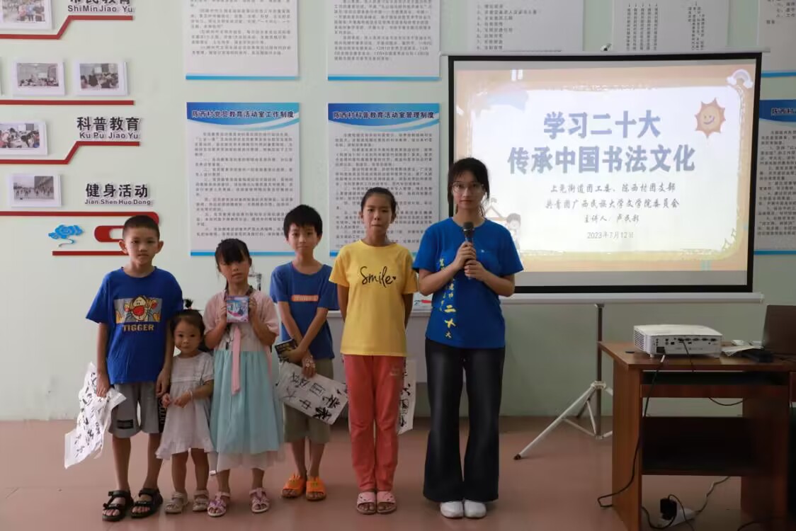 為宣傳貫徹黨的二十大精神,傳承中華優秀傳統文化,7月14日,文學院團委學生會“‘青’進基層沃野”志愿服務隊到上堯街道辦事處陳西村開展以“學習貫徹‘二十大’,弘揚中華書法文化”為主題的書法授課活動,志愿者盧民彩擔任主講人。