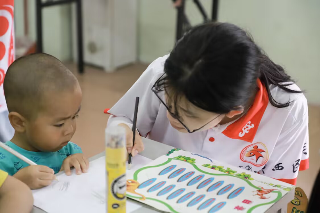 為深入基層傳遞紅色基因,培養(yǎng)少年兒童愛黨愛國情懷,7月15日,文學(xué)院團委學(xué)生會“‘青’進(jìn)基層沃野”志愿服務(wù)隊前往南寧市西鄉(xiāng)塘區(qū)上堯街道陳西村開展“學(xué)習(xí)二十大,‘繪’出心中國”主題繪畫活動,此次活動由志愿者寧延春主講, 陳西村20余名小朋友參與。