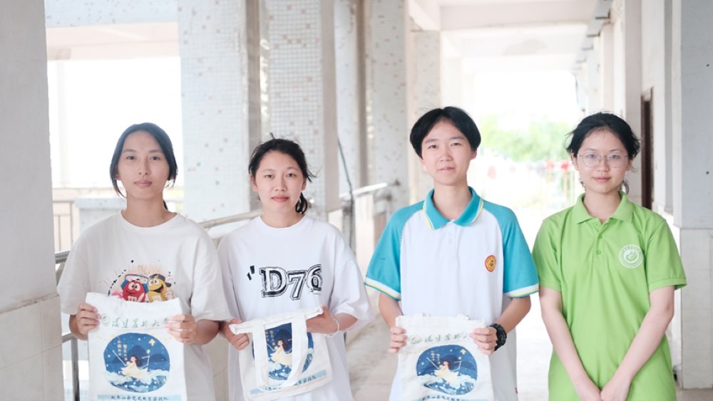 圖為實踐隊員在東山二中給學生們發放實踐隊文創