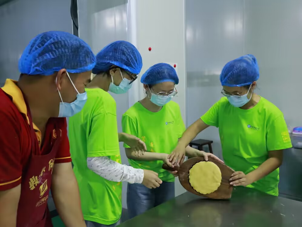 7月11日,文學(xué)院團委學(xué)生會“歸雁成行,助力鄉(xiāng)村”志愿服務(wù)隊前往合浦鼎興餅業(yè)有限公司走訪參觀,并進行月餅制作實踐活動。